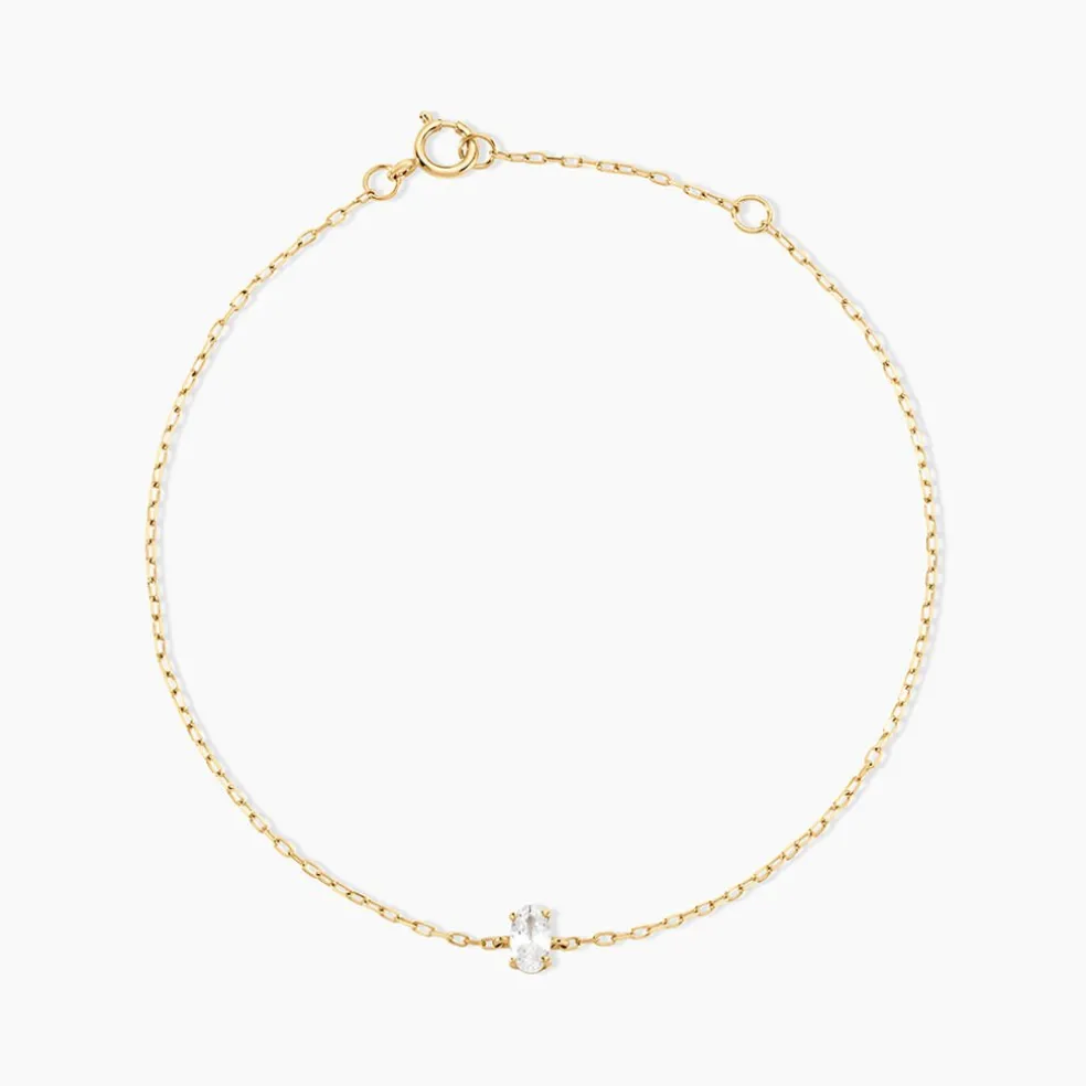 Bracelet Or Jaune 375/1000 Solitaire Ovale Oxyde De Zirconium Serti Griffes Maille Forcat 16+2Cm