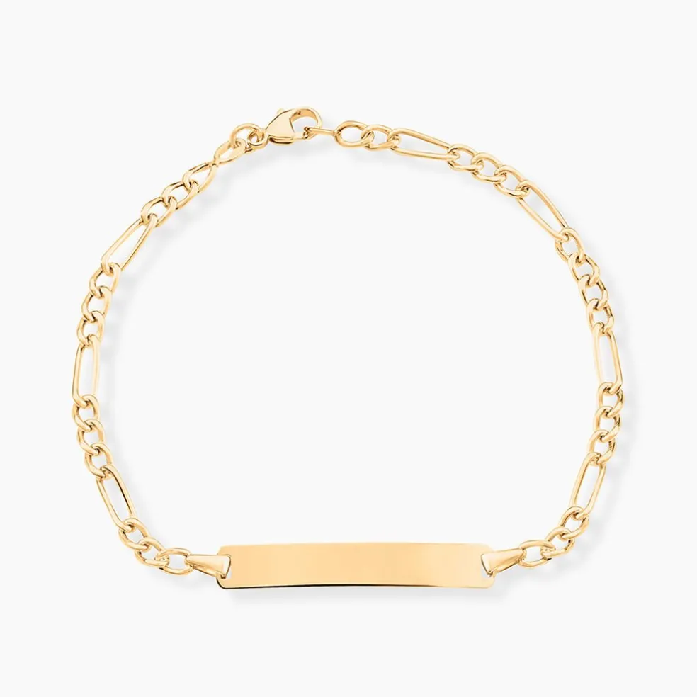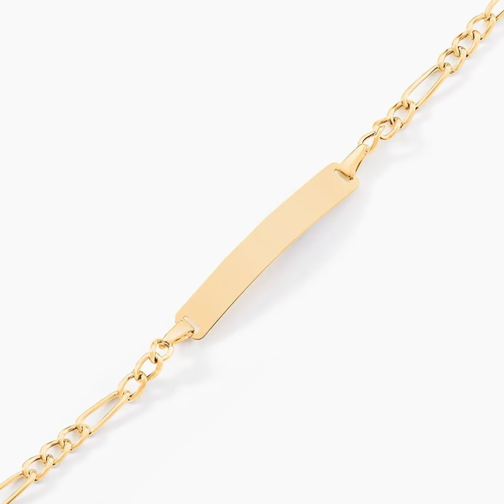 Bracelet Identite Bebe Or Jaune 375/1000 Plaque Rectangle Maille Alternee 1/3 2.85mm 16cm