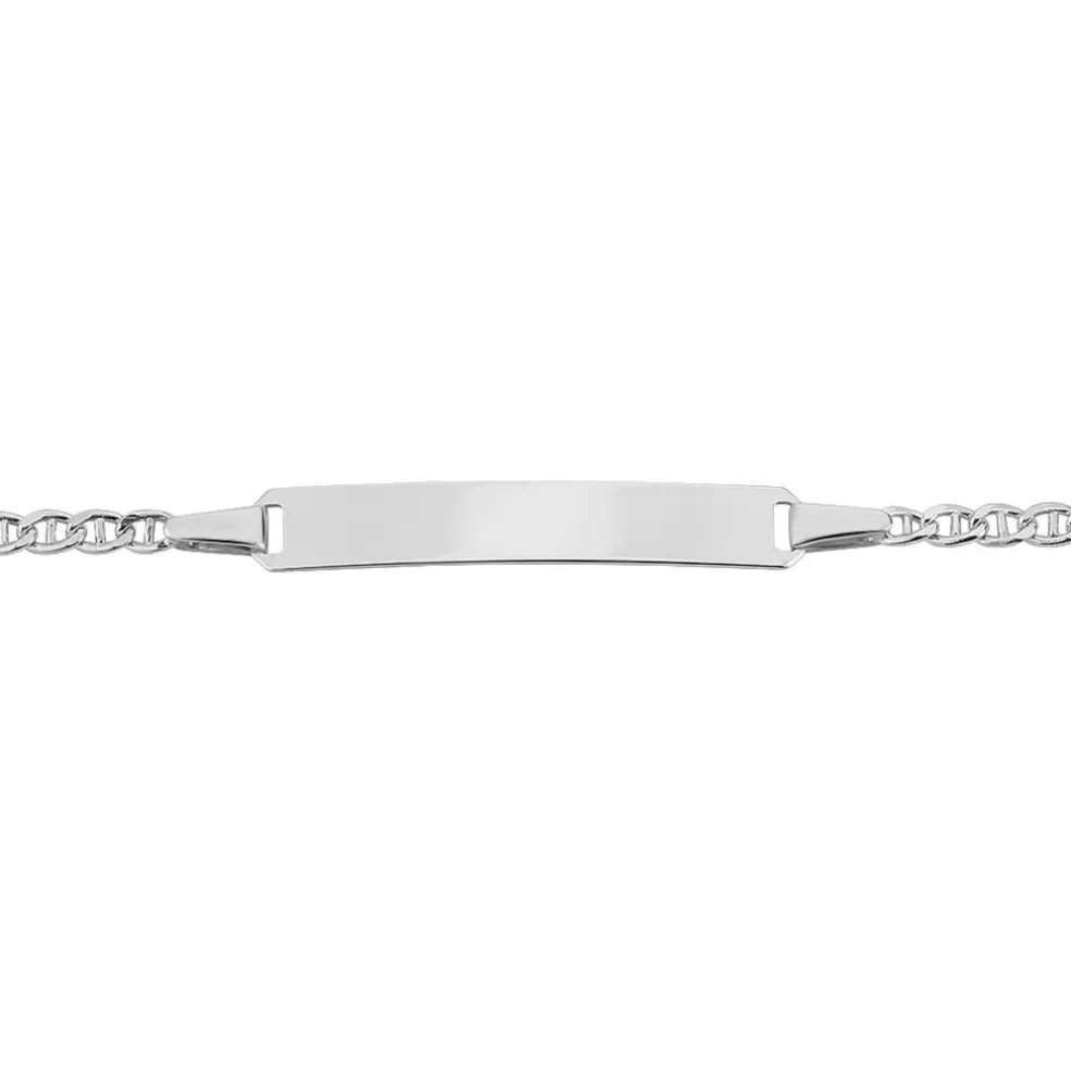 Bracelet Identite Bebe Or Blanc 750/1000 Plaque Rectangle Maille Marine 11/13cm