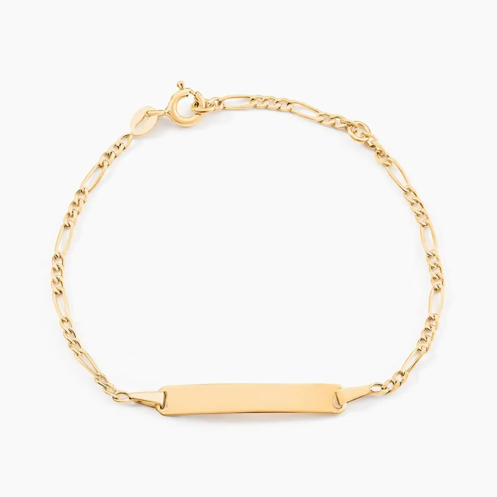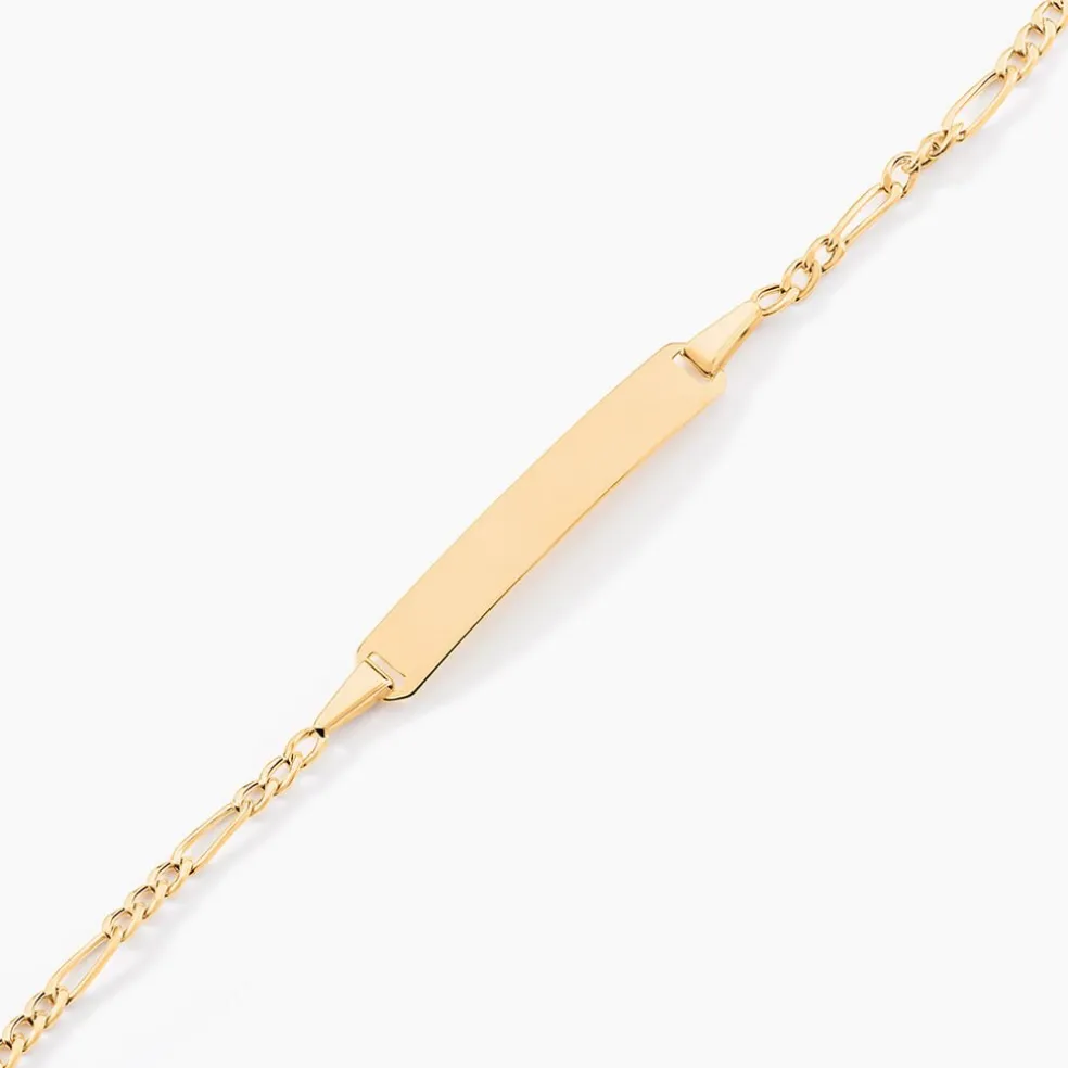 Bracelet Identite Bebe Or Jaune 375/1000 Plaque Rectangle Maille Alternee 1/3 13+2cm