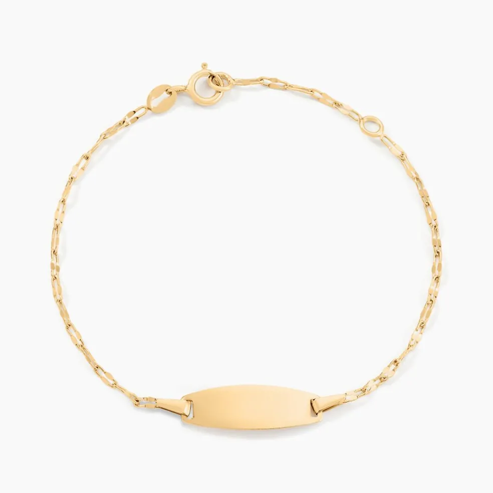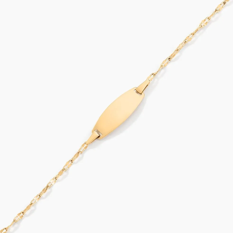 Bracelet Identite Bebe Or Jaune 750/1000 Plaque Ovale Maille Lumina Largeur 1.6mm 14+2cm