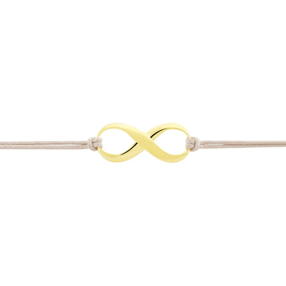 Bracelet Or Jaune 375/1000 Sur Cordon Coton Beige Ajustable