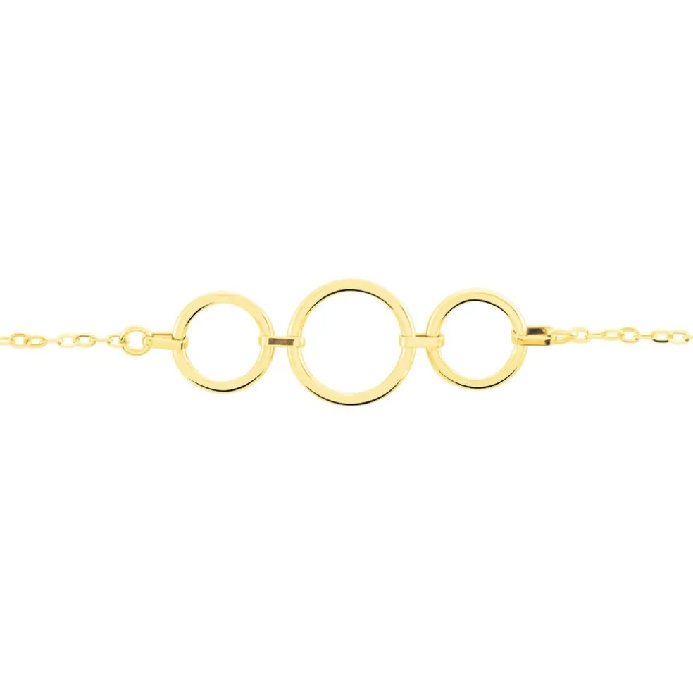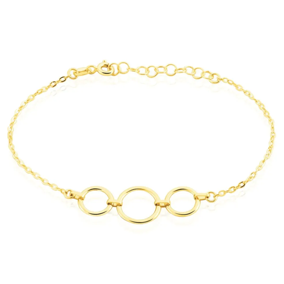Bracelet Or Jaune 375/1000 3 Maillons Ronds Lisses 19cm