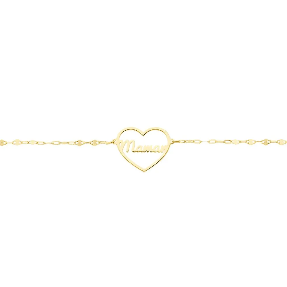 Bracelet Or Jaune 375/1000 C艙ur Ajoure Avec Message Maman Maille Lumina 16+2cm