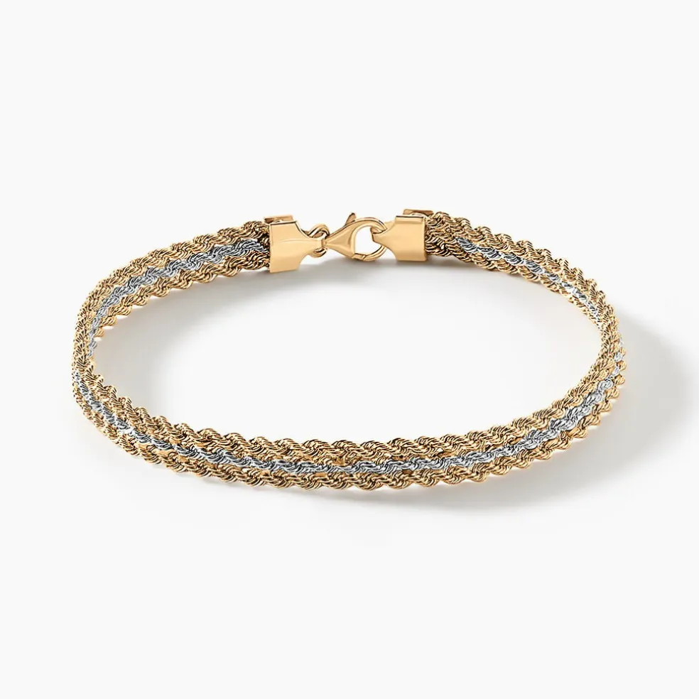 Bracelet Bicolore Jaune Blanc Or 750/1000 Maille Corde Triple Rangs Largeur 6,2Mm 19Cm
