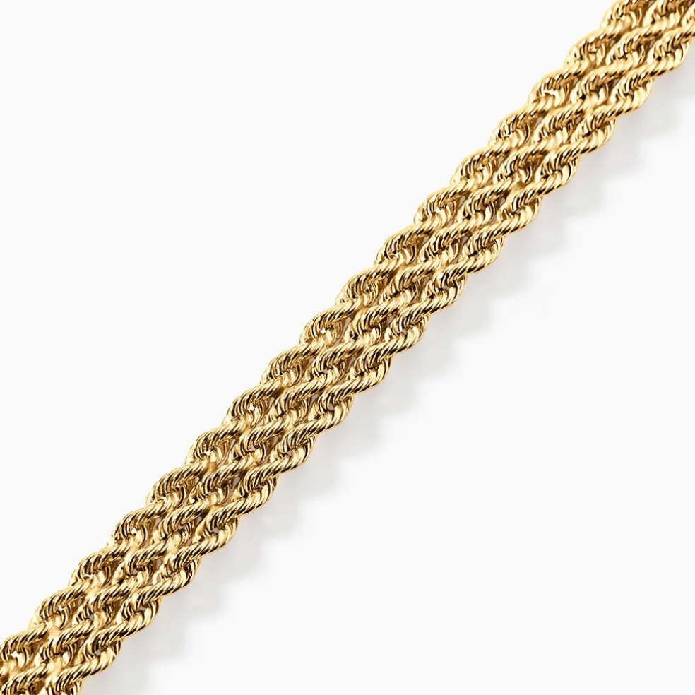 Bracelet Or Jaune 375/1000 3 Rangs Corde 6.2mm 19cm