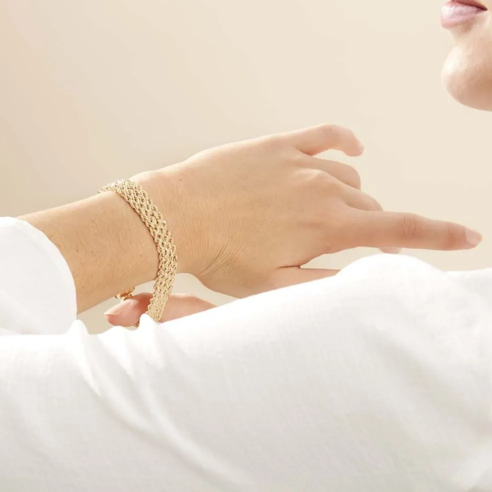 Bracelet Or Jaune 375/1000 Maille Corde 4 Rangs 3.5mm 19cm