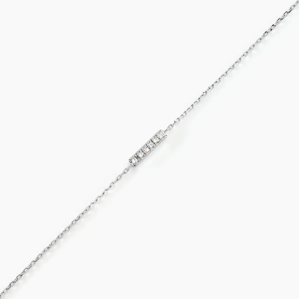 Bracelet Or Blanc 375/1000 Forme Barrette Diamants 16+2cm