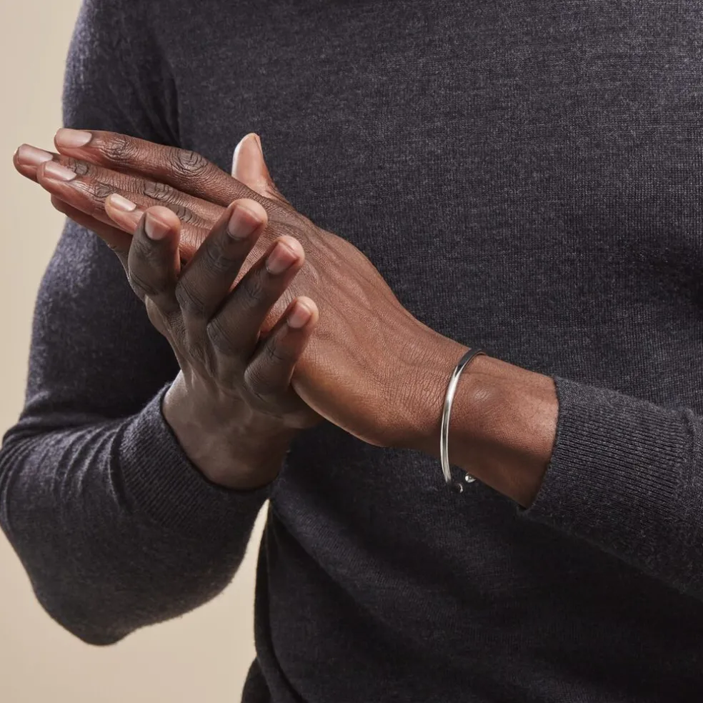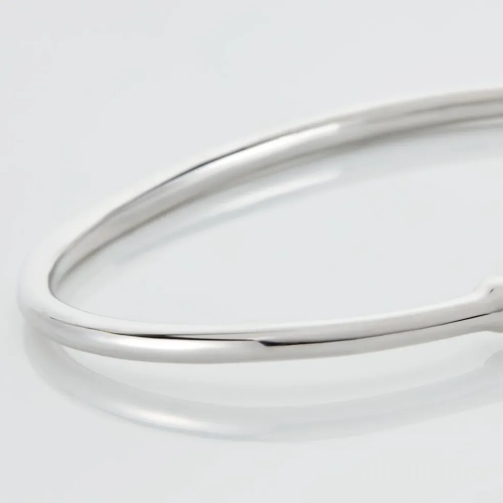 Bracelet Jonc Argent Blanc 925/1000 Fil Lisse Finition Boules Diametre 70mm