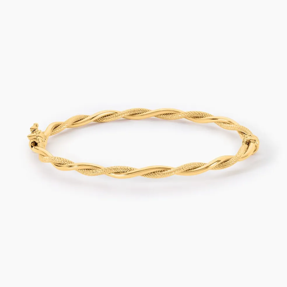 Bracelet Jonc Or Jaune 750/1000 Fil Rond Torsade Largeur 2Mm Diametre 60X50Mm