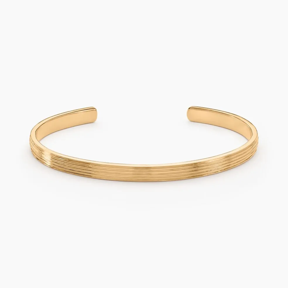 Bracelet Jonc Plaqué Or Jaune Strié Diamètre 60mm