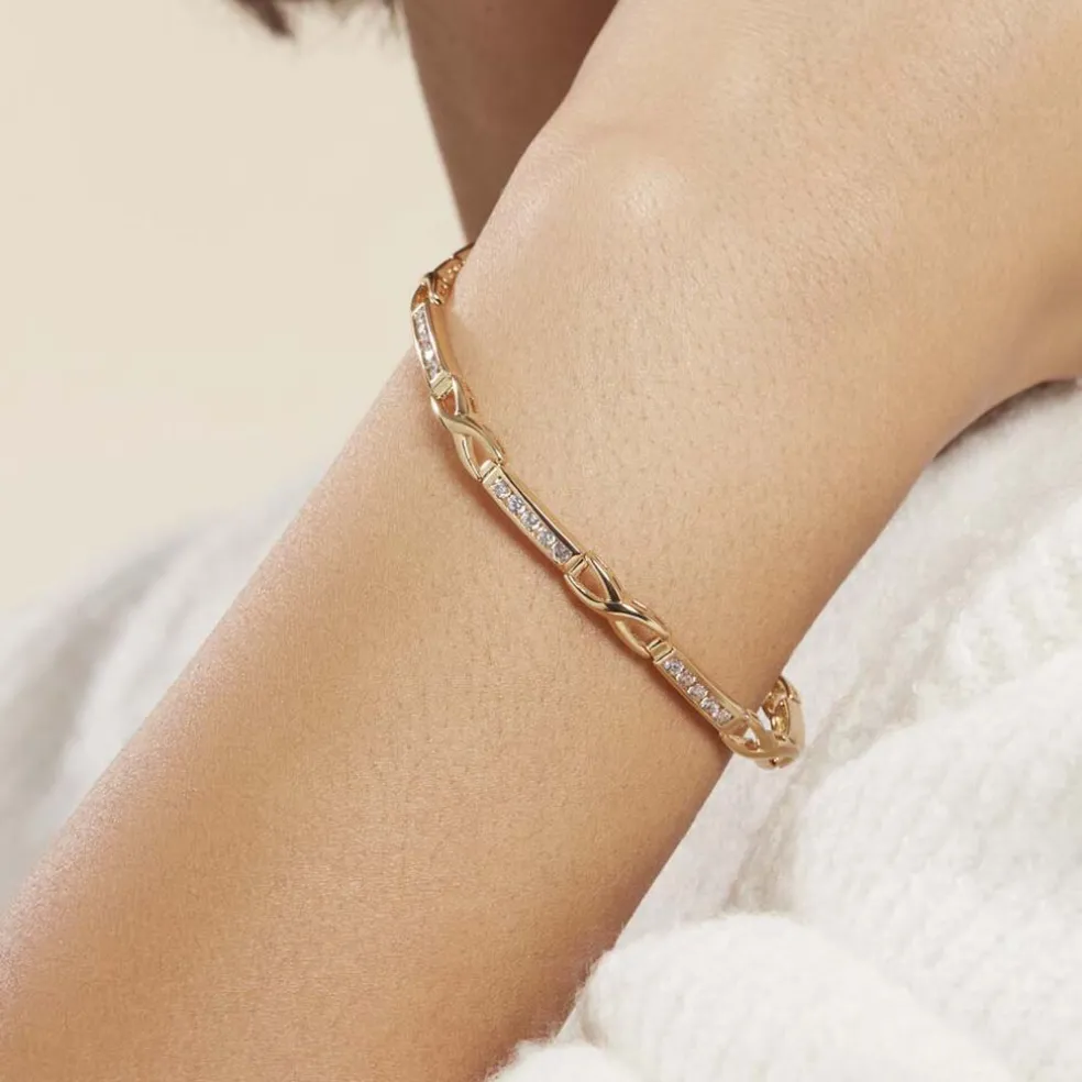 Bracelet Plaqué Or Jaune Oxydes De Zirconuim Rigide 18cm