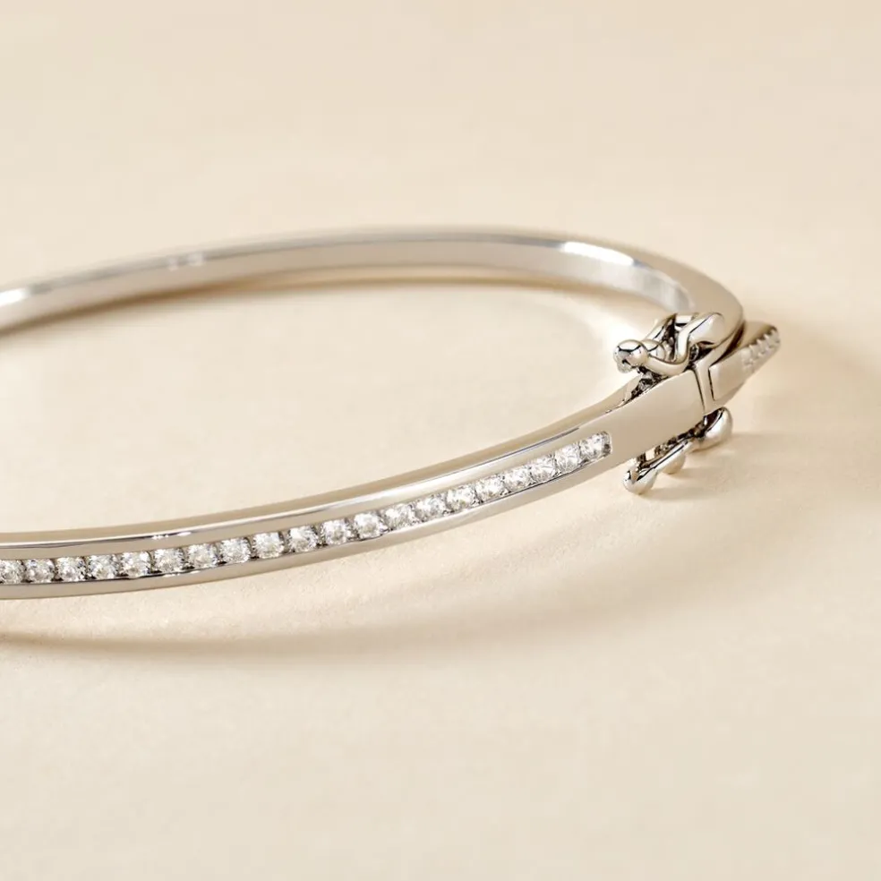 Bracelet Jonc Argent 925/1000 laurianne Oxydes De Zirconium 5.8cm/5.3cm