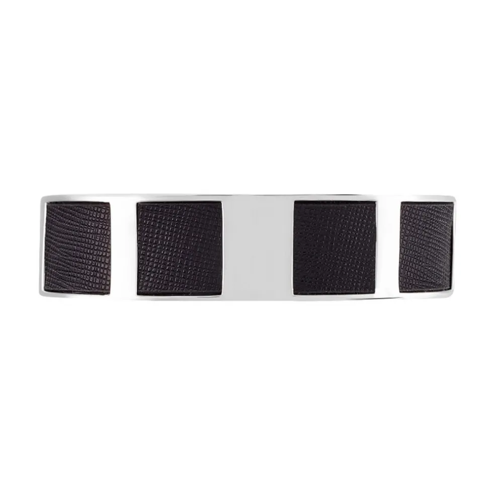 Jonc Argent 925/1000 Ouvert Cuir Noir Dia 70mm