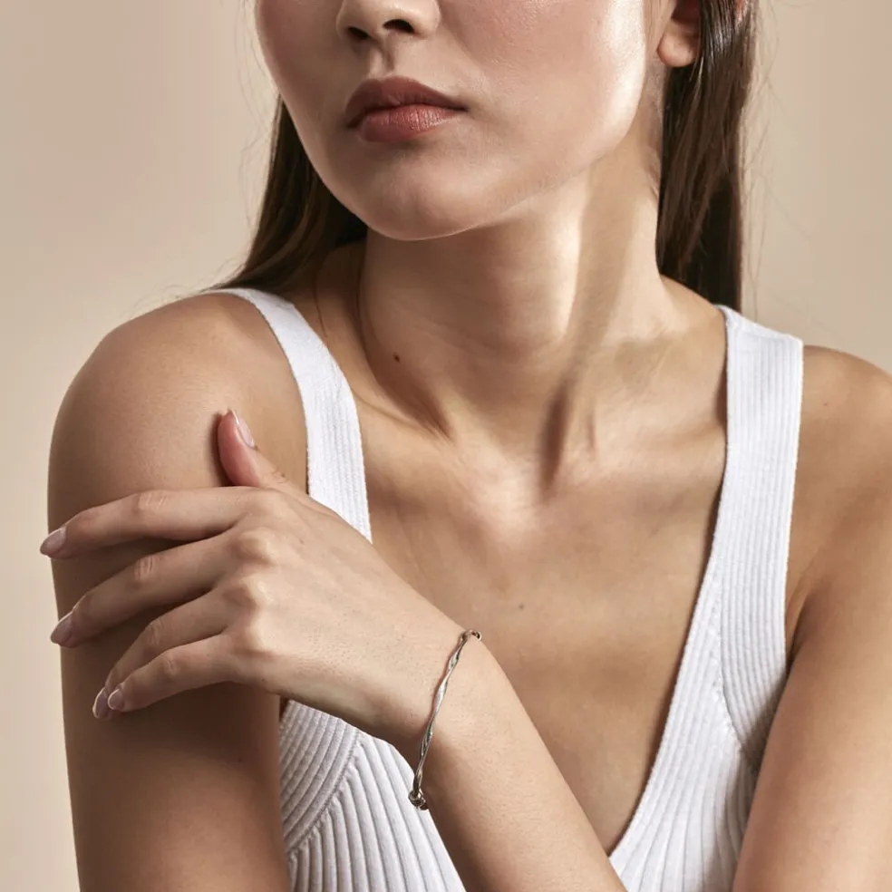 Bracelet Jonc Argent Blanc 925/1000 Vague Diametre 60