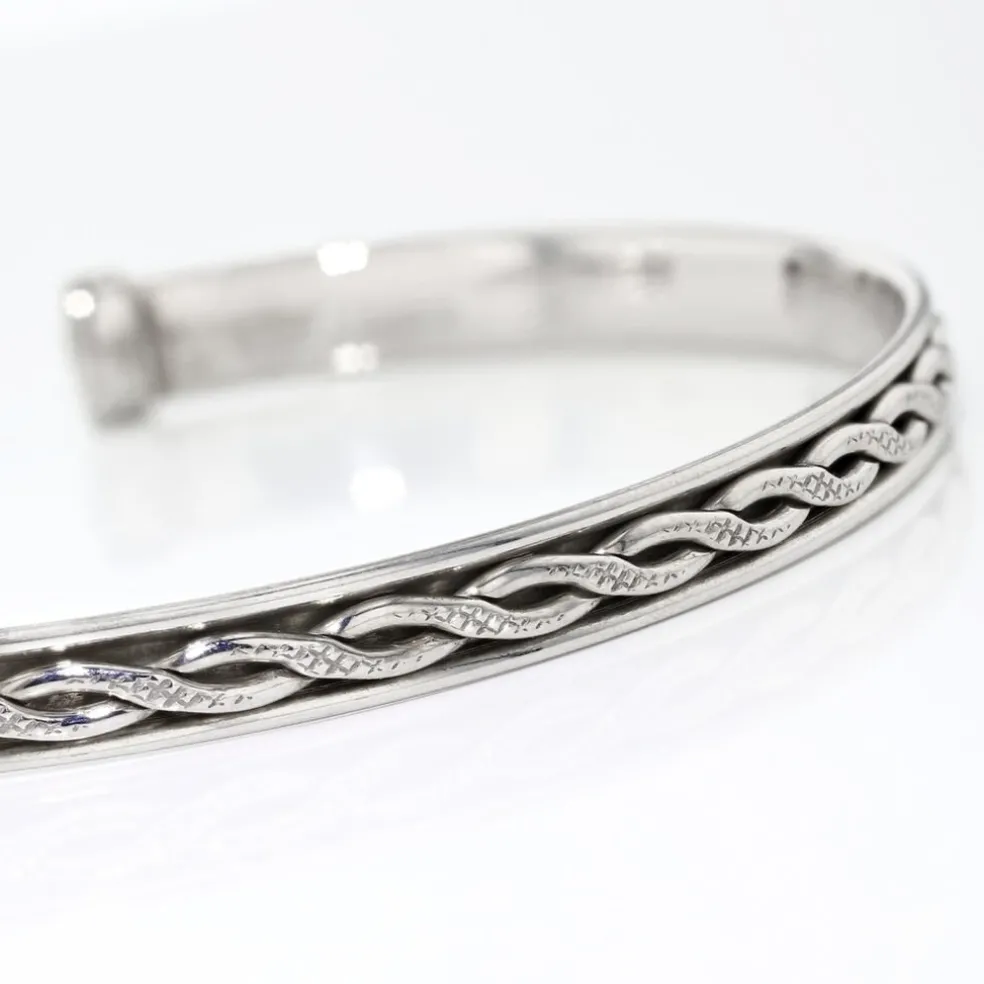 Bracelet Jonc Argent 925/1000 Motif Tresse Effet Vieilli Diametre 70mm