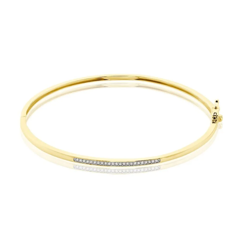 Bracelet Jonc Or 375/1000 Ovale Diamants Ronds Serti Grains Diamètre 63x53mm