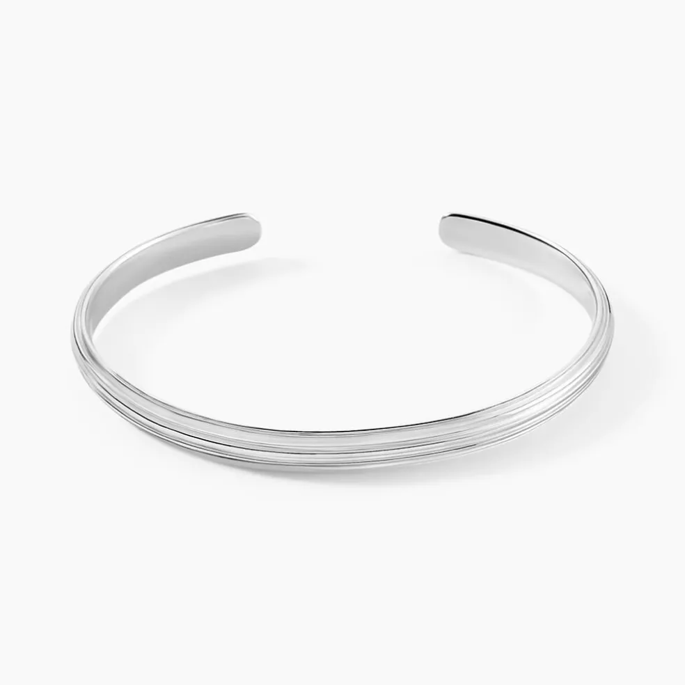 Bracelet Jonc Argent Blanc 925/1000 Rainures Diametre 55*65Mm