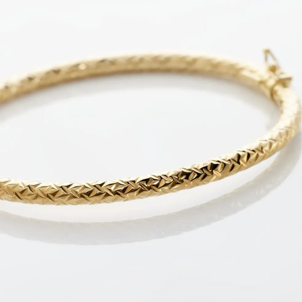 Bracelet Jonc Or Jaune 375/1000 Effet Diamante 4mm