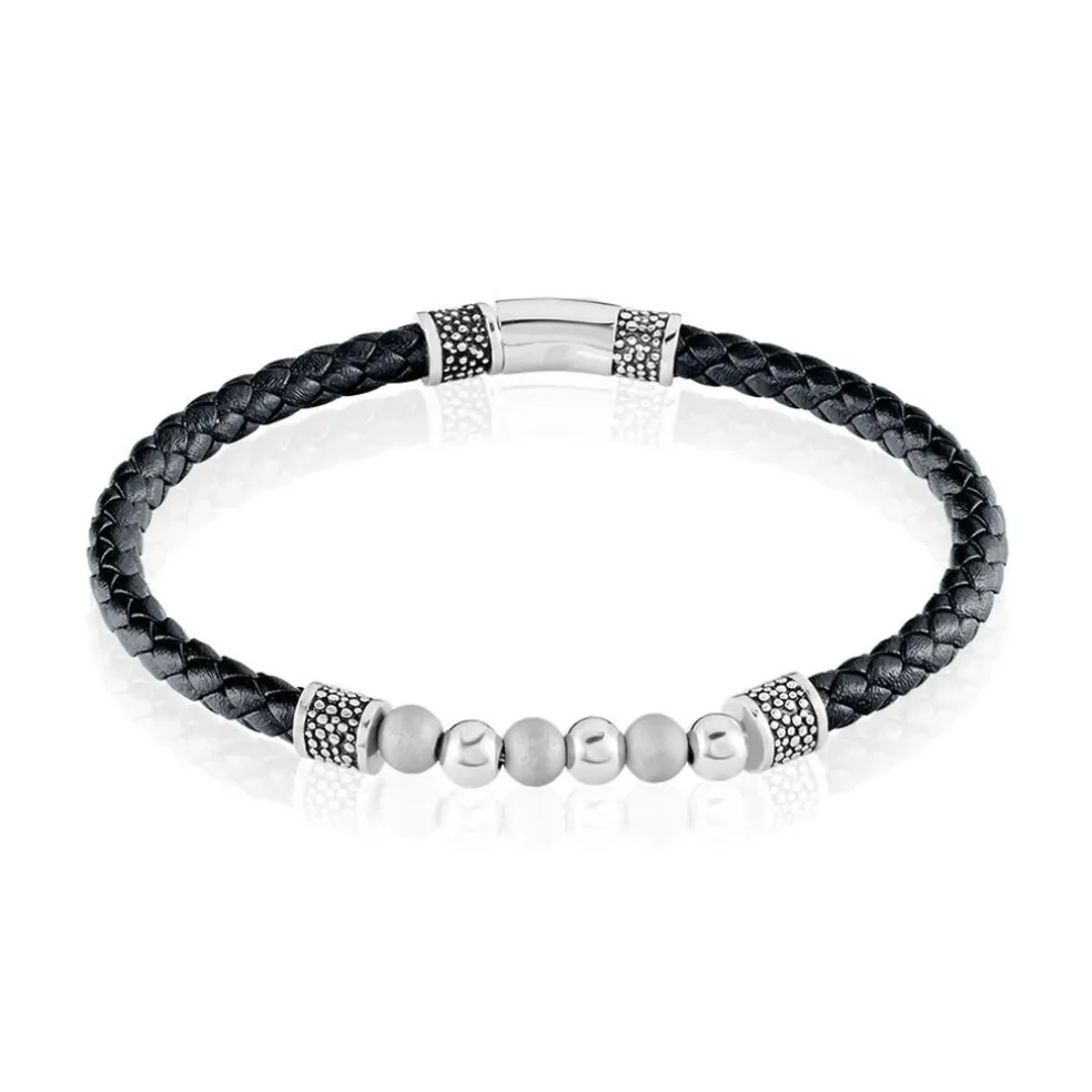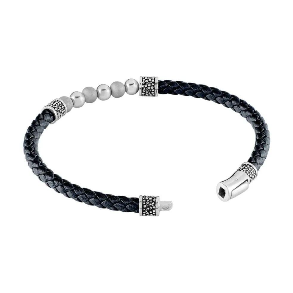 Bracelet Jourdan Pheonix Cuir Noir Et Acier Blanc 20.5cm Jh100009b