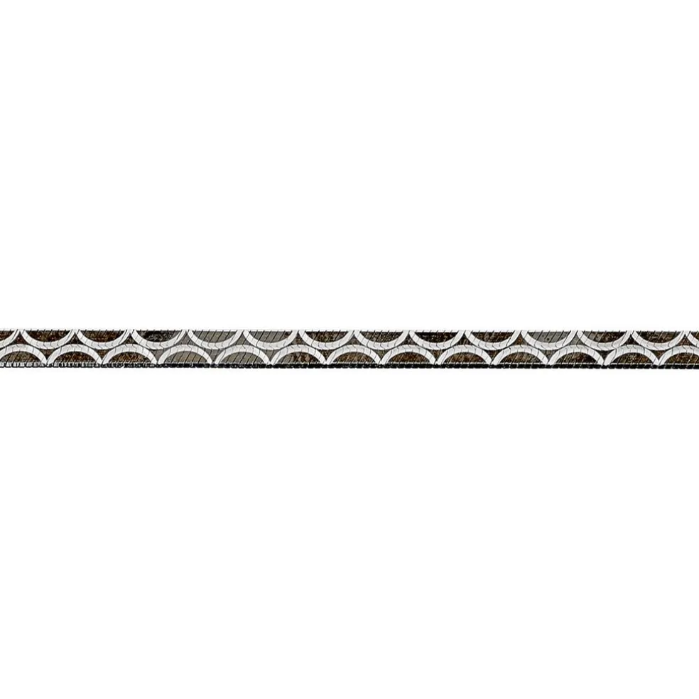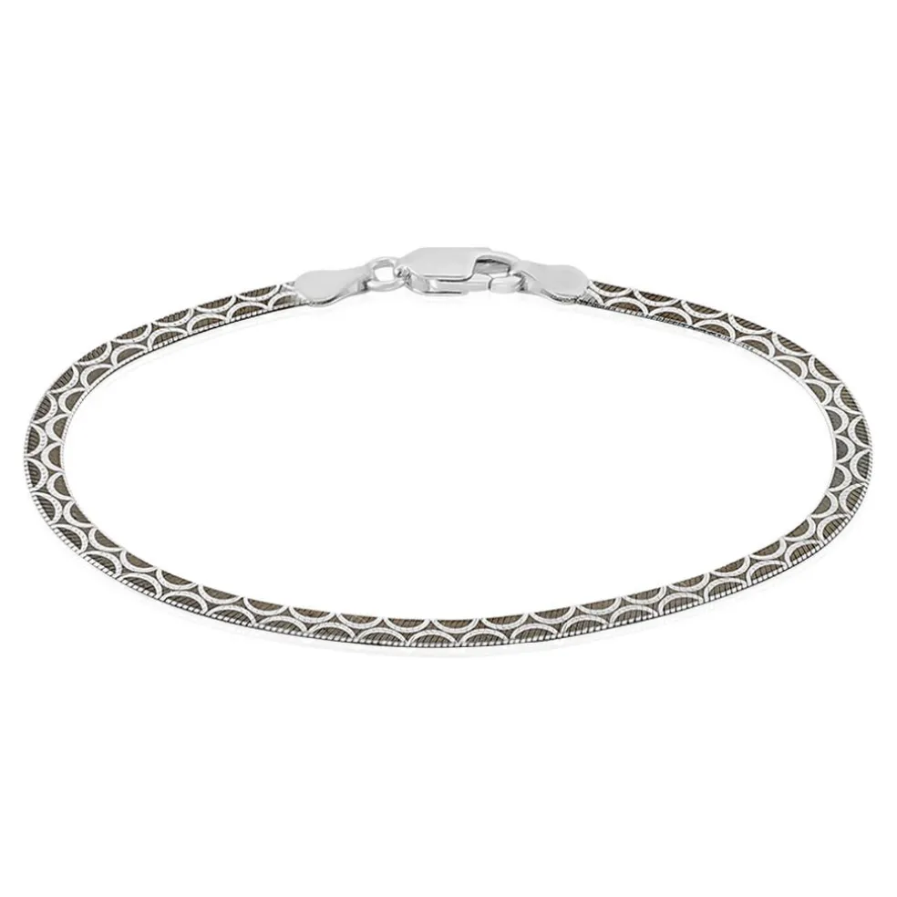 Bracelet Argent Bicolore 925/1000 Maille Heringbone Motifs Demi-cercles Largeur 3.1mm 18cm