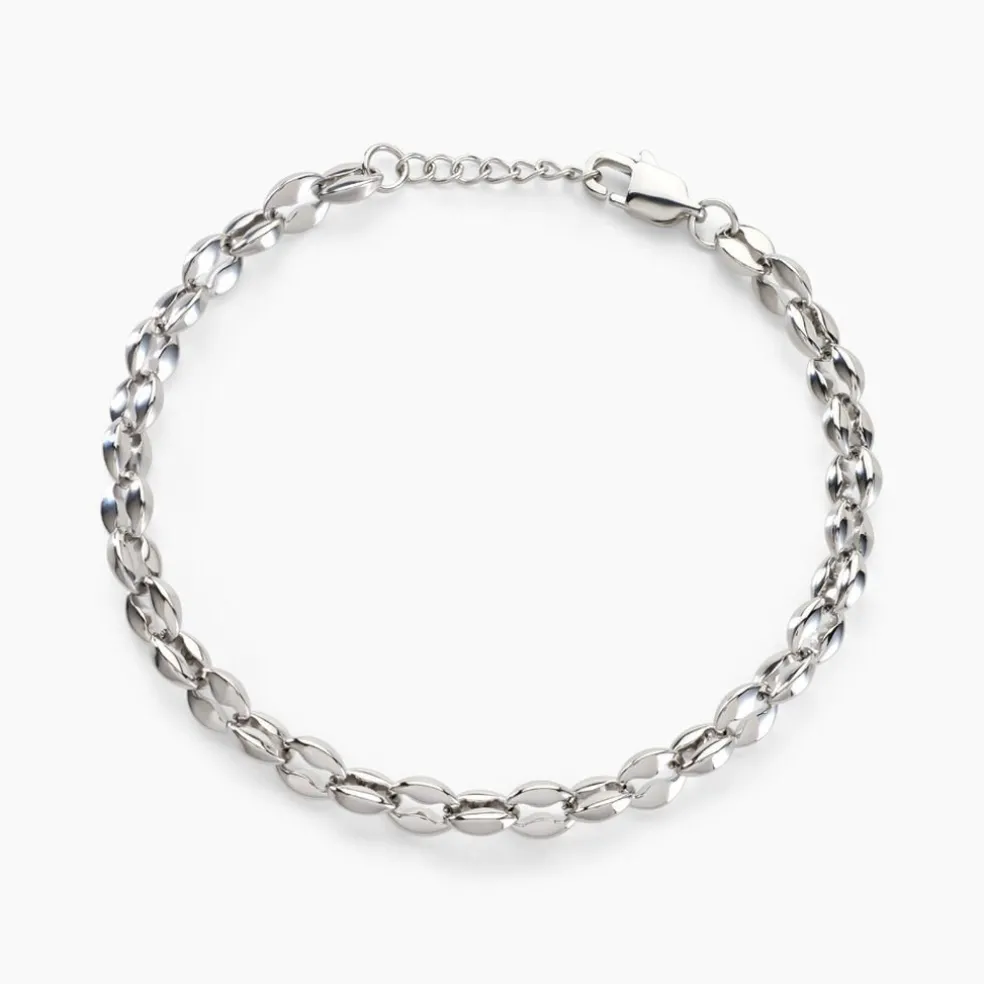 Bracelet Acier Inoxydable Blanc Maille Grain De Cafe Largeur 5mm 19+2cm