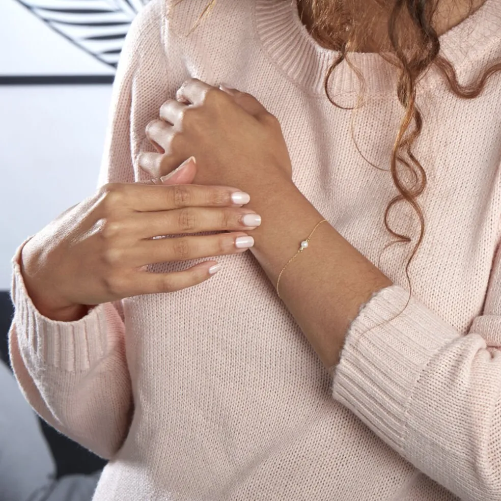 Bracelet Or Jaune 375/1000 Perle De Culture 4.5/5mm Et Boules Or 18cm