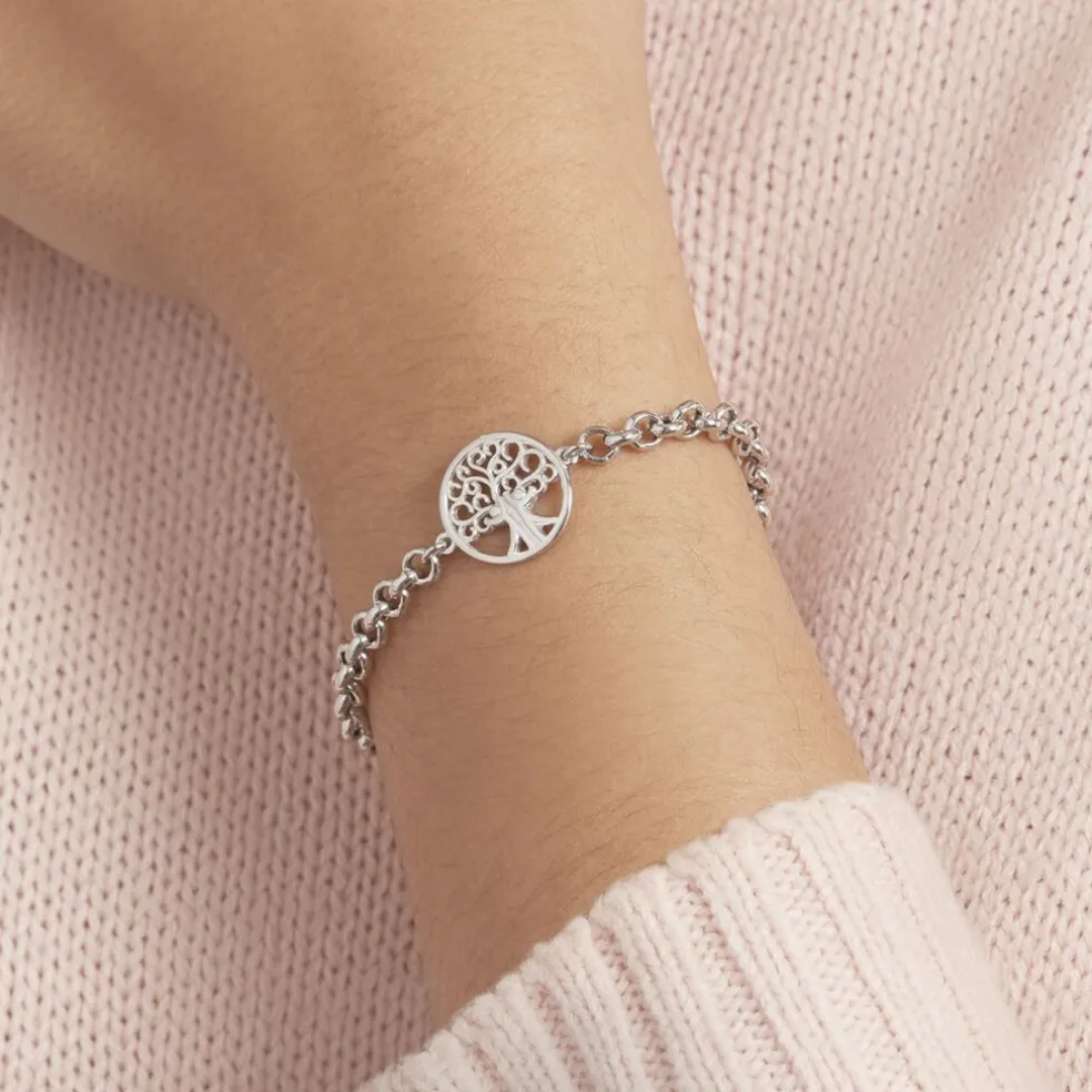 Bracelet Argent Blanc 925/1000 Arbre De Vie Maille Jaseron 18.5cm