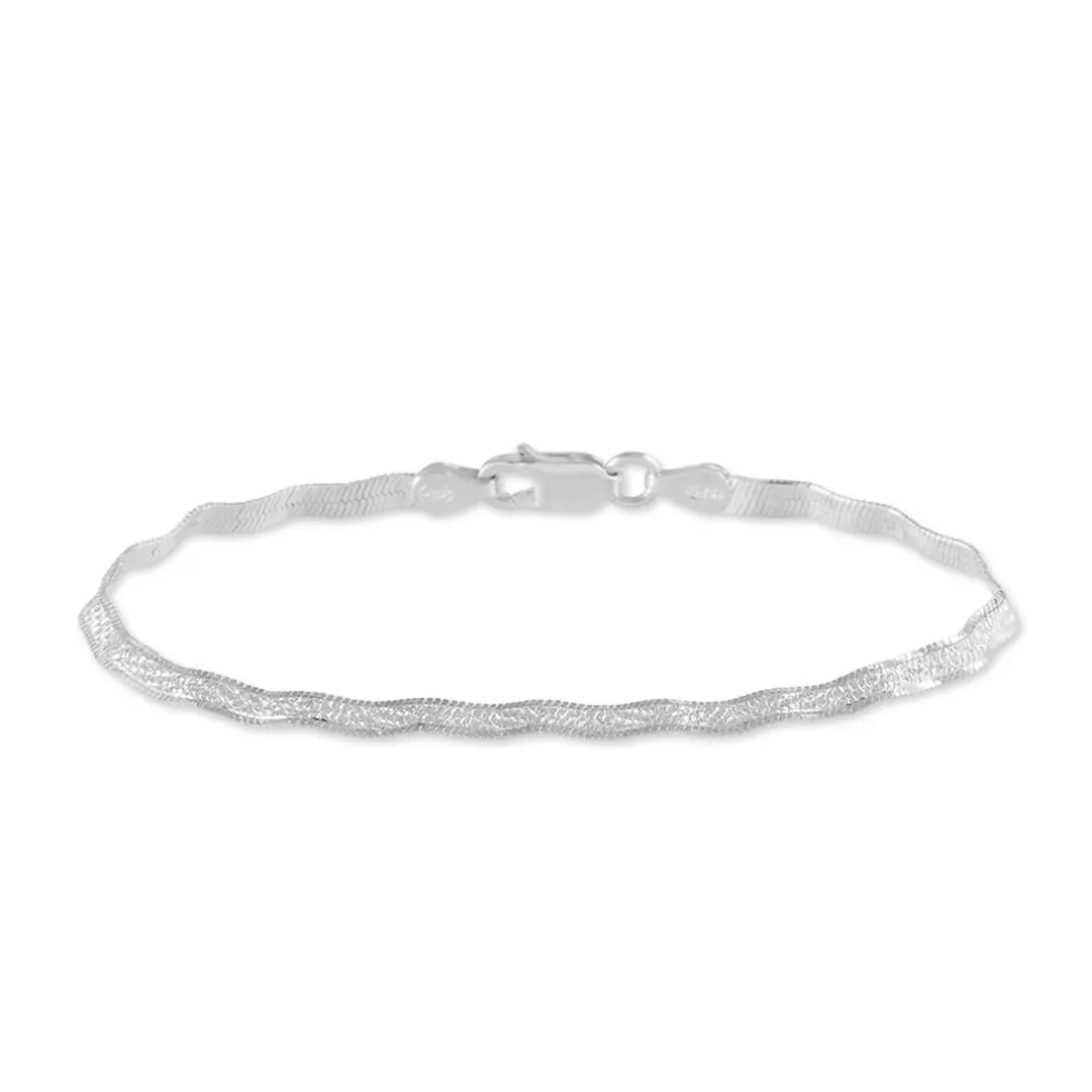 Bracelet Argent Blanc 925/1000 Maille Heringbone Ondulee Diamantee Largeur 3.2mm 18cm