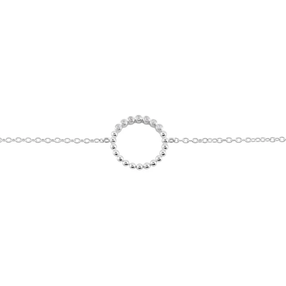Bracelet Argent 925/1000 Cercle Perlé Micro Setting Oxydes De Zirconium Maille Forçat 18.5cm