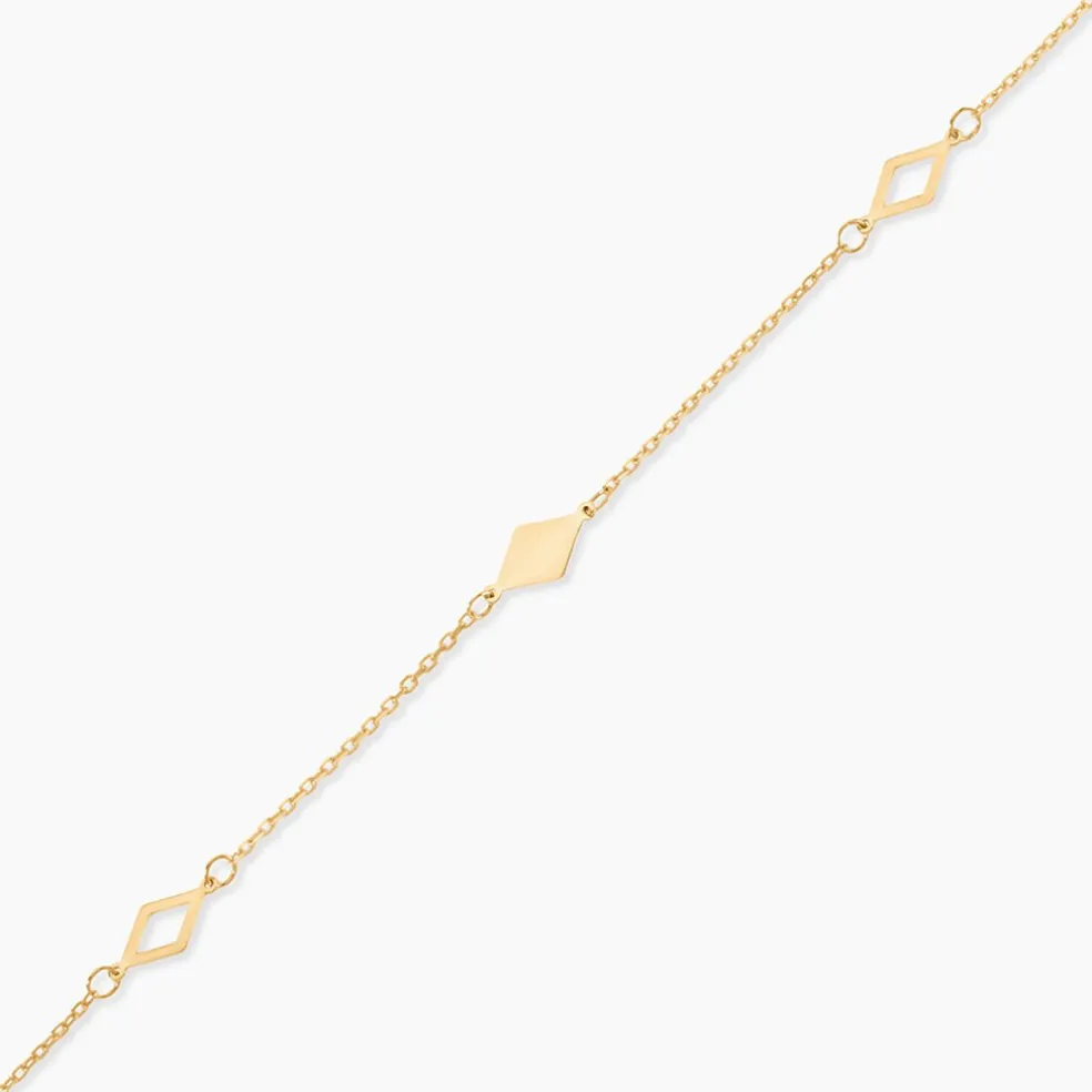 Bracelet Or Jaune 375/1000 Trilogie Losanges Maille Forcat 16+2Cm