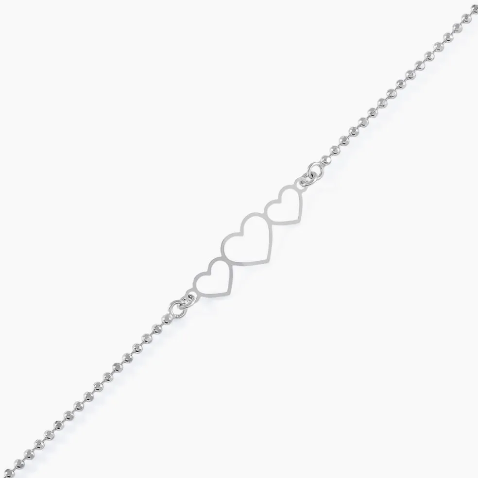 Bracelet Argent Blanc 925/1000 Triple Coeurs Ajoures Maille Boule 19cm