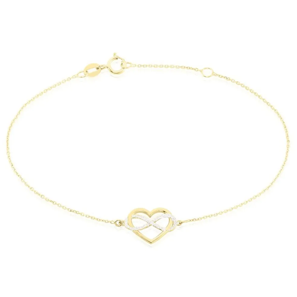 Bracelet Or Jaune 375/1000 C艙ur Ajoure Et Infini Glitter Argente Maille Jaseron 16+2cm