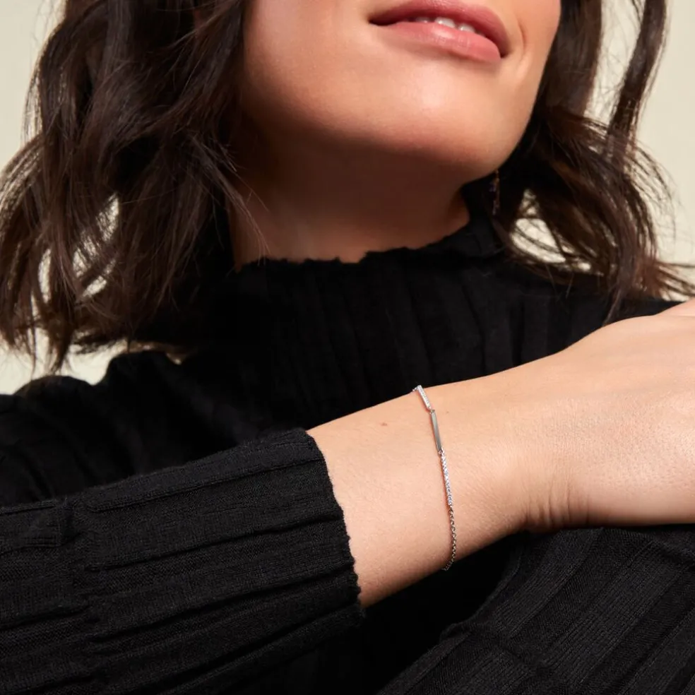 Bracelet Argent Blanc 925/1000 Barrettes Pavage Oxydes De Zirconium Maille Jaseron 16+2cm