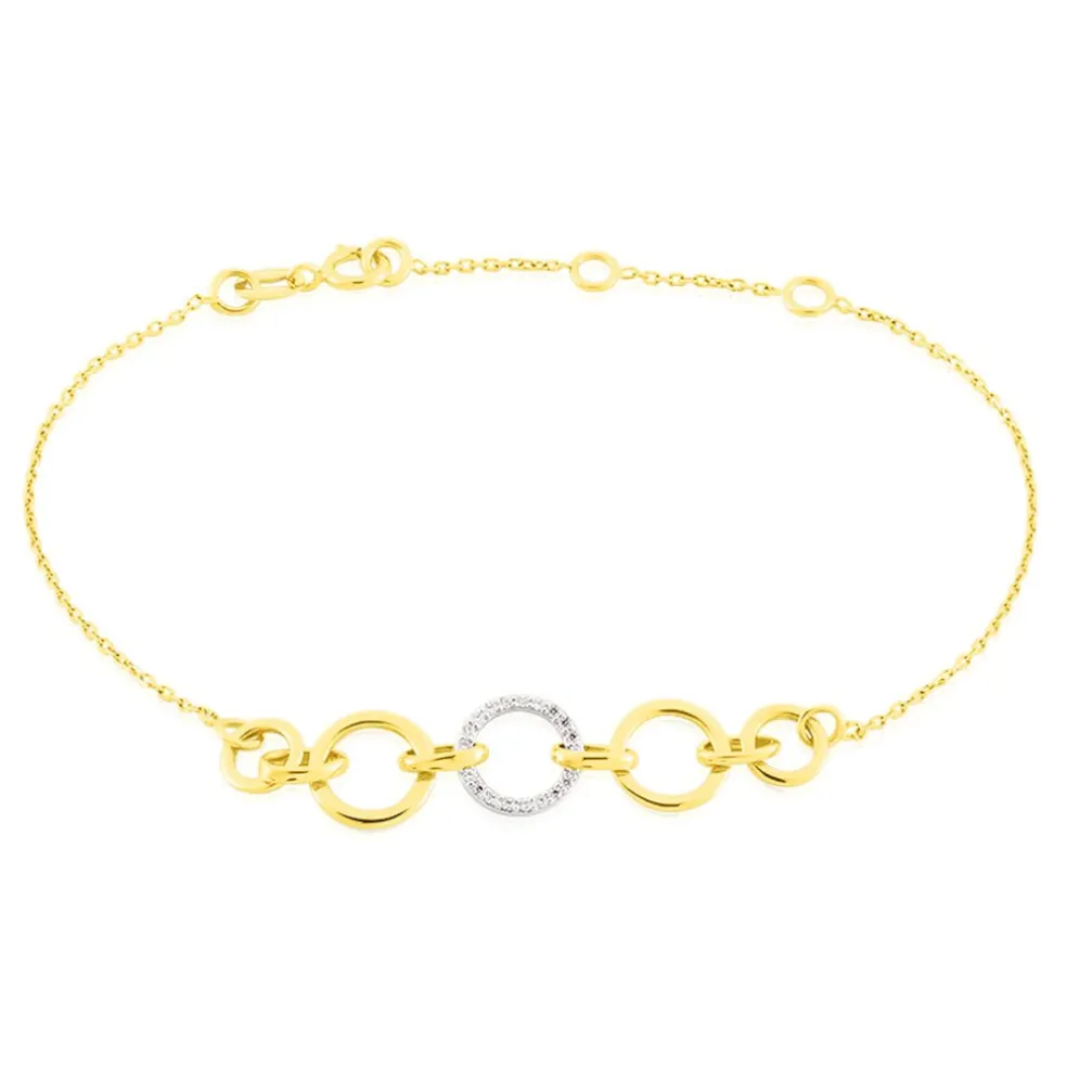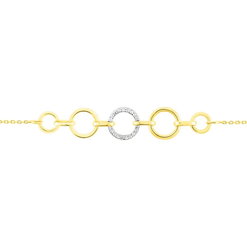 Bracelet Or Jaune 375/1000 Médaillons Et Oxydes De Zirconium 17cm