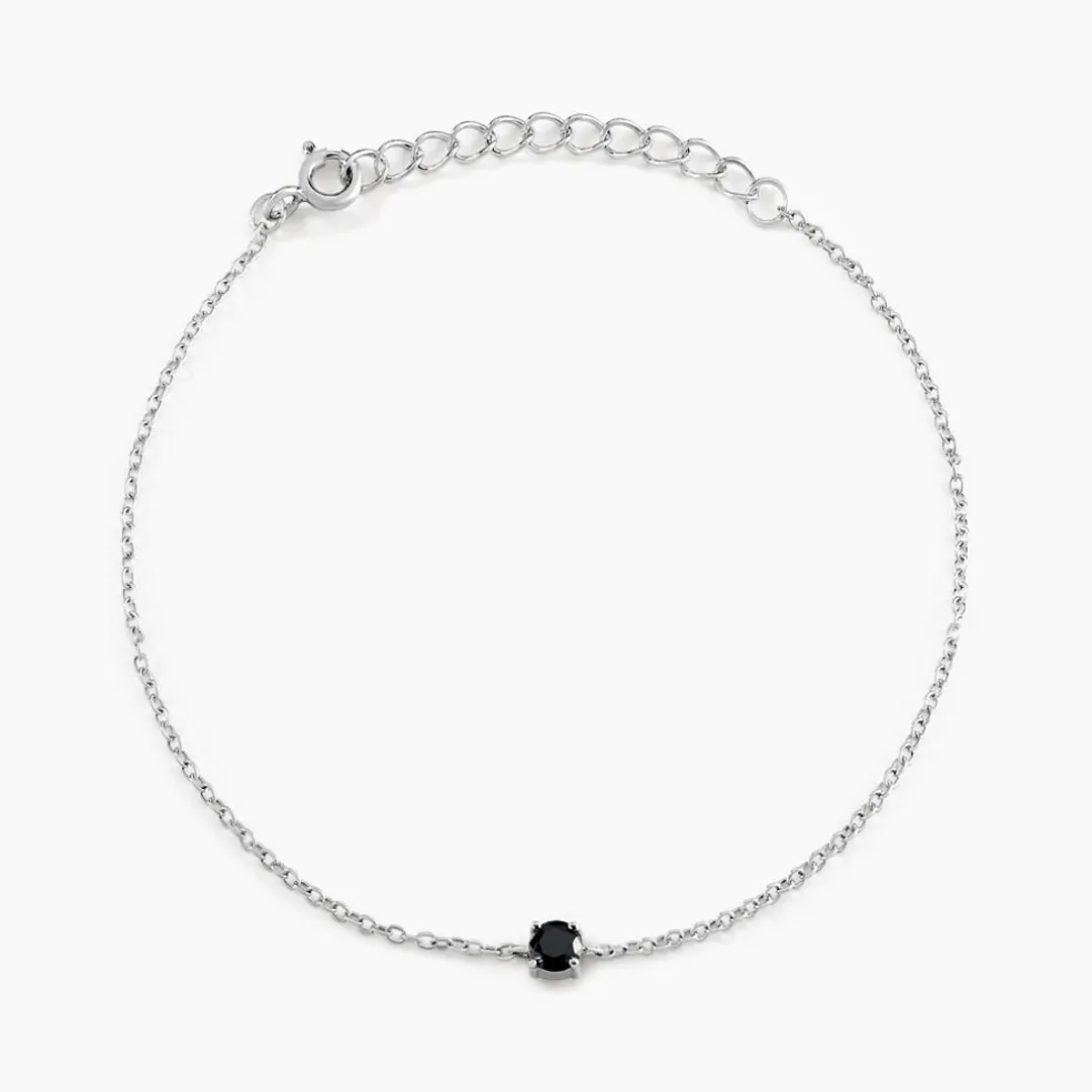 Bracelet Solitaire Argent 925/1000 Oxyde De Zirconium Noir Serti 4 Griffes 4mm Maille Forçat 19cm