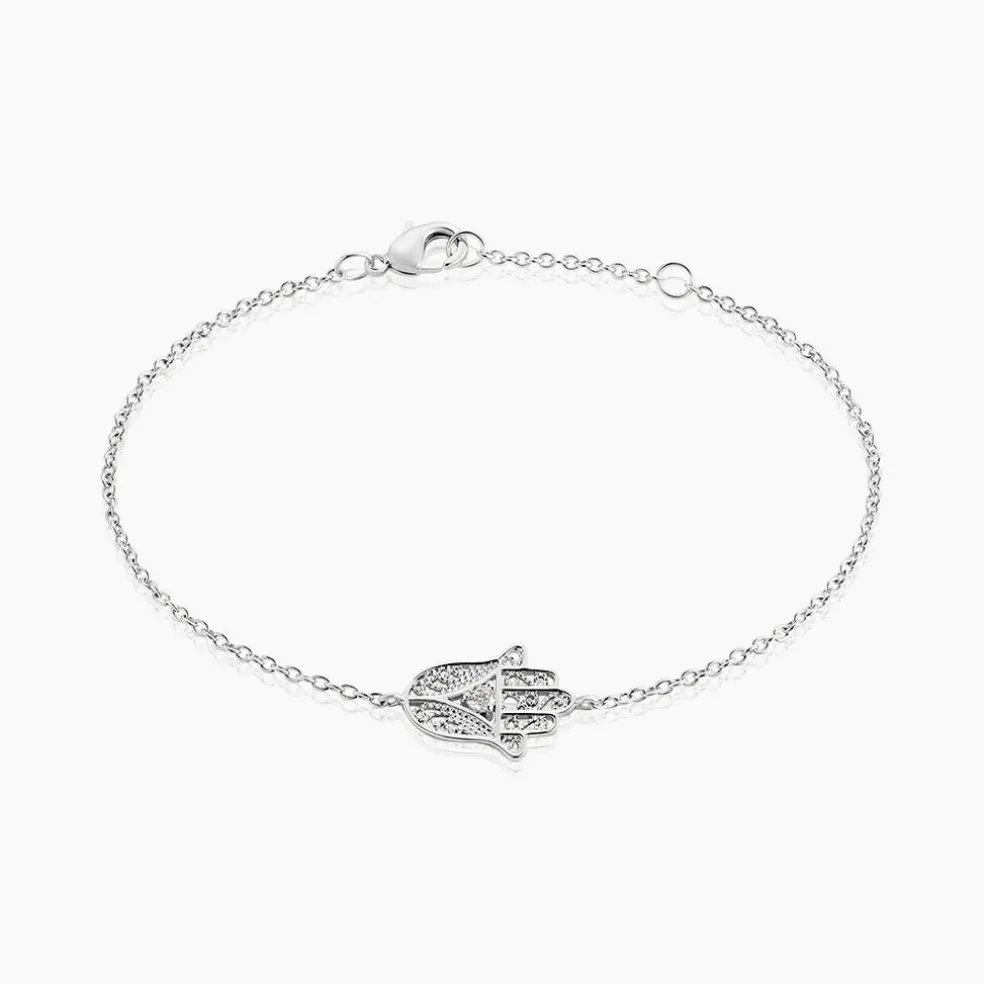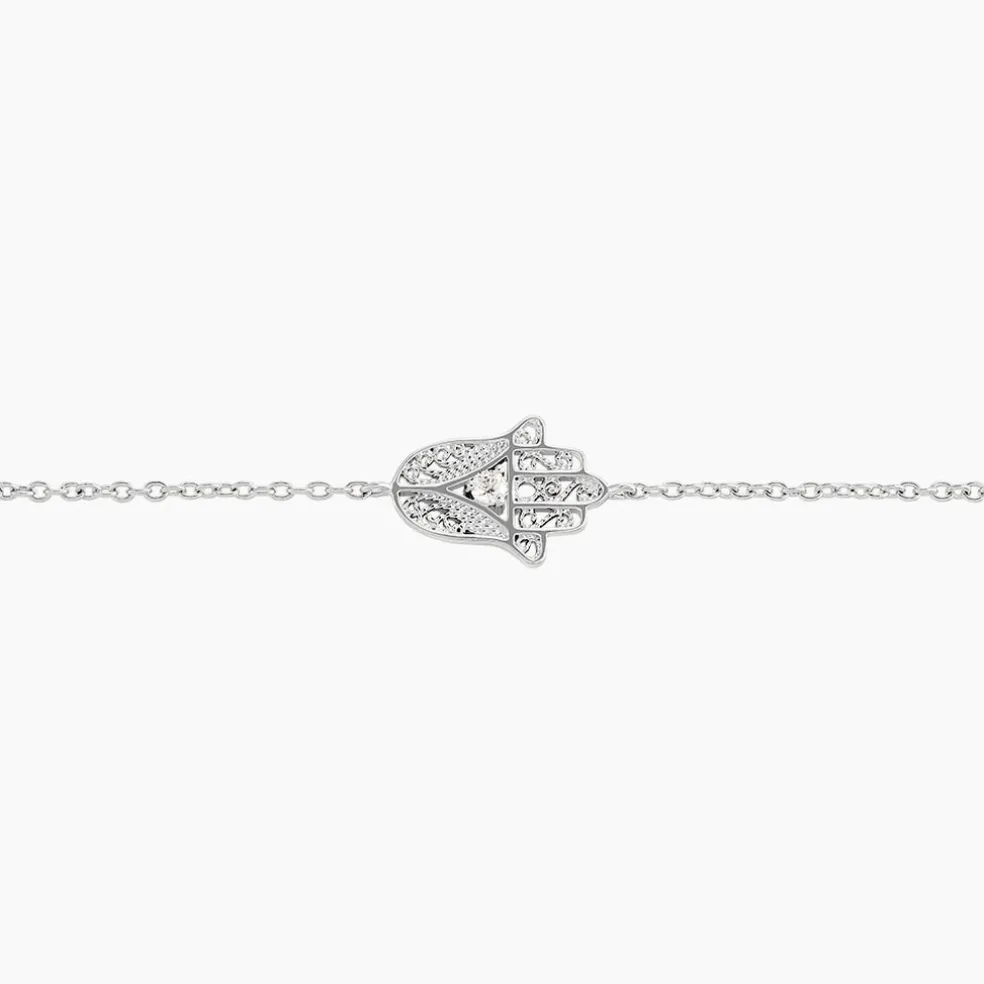 Bracelet Argent Blanc 925/1000 Main De Fatma Oxyde De Zirconium Blanc 0.12 Cts Serti 3 Griffes 16+2cm