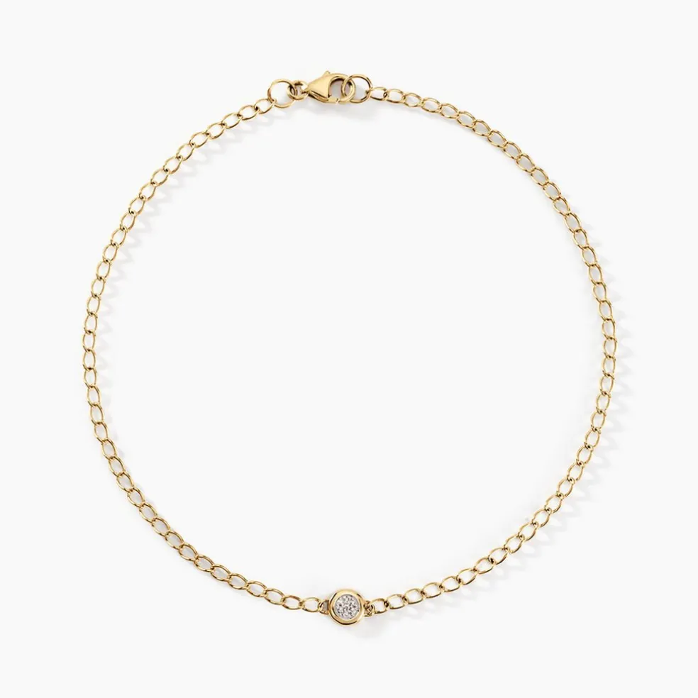 Bracelet Or Jaune 375/1000 Rond Diamants 0.004cts Illusion Maille Gourmette 21cm