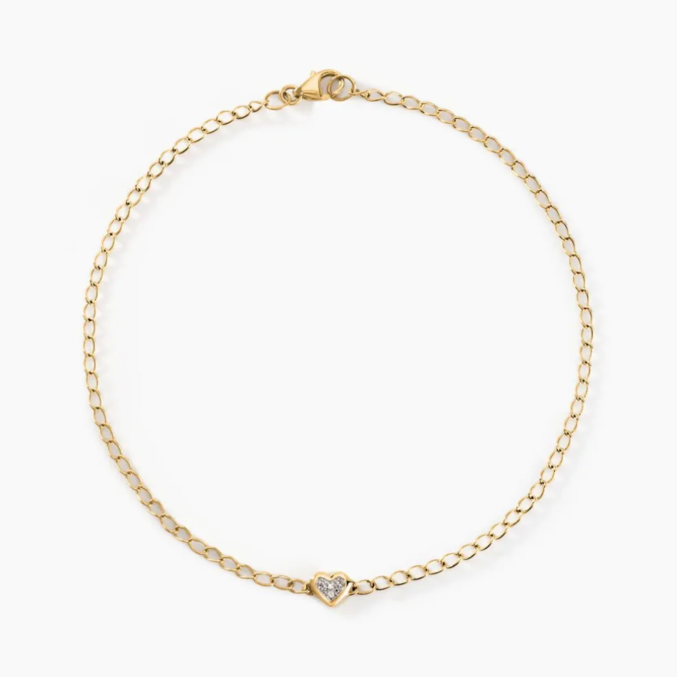 Bracelet Or Jaune 375/1000 Coeur Diamants 0.004cts Illusion Maille Gourmette 21cm