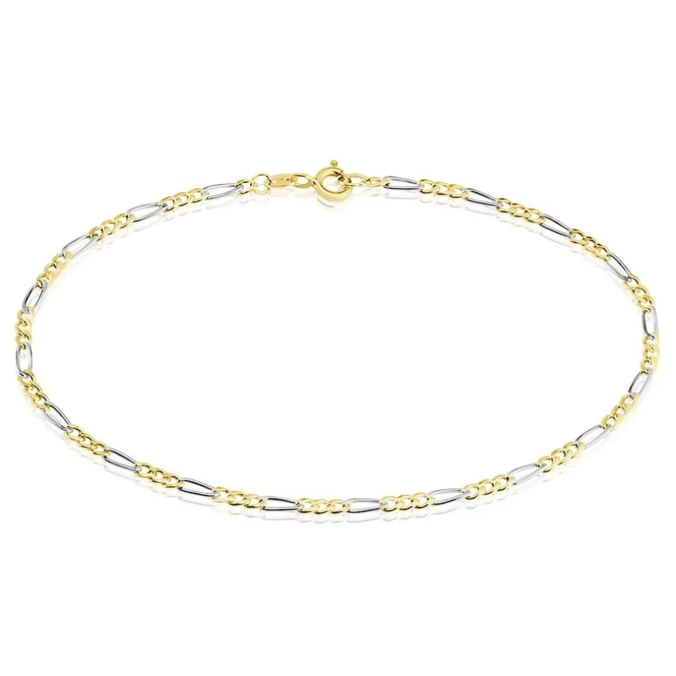Bracelet Maille Or Bicolore Jaune Et Blanc 750/1000 Maille Alternee 1/3 Largeur 2.2mm 20cm