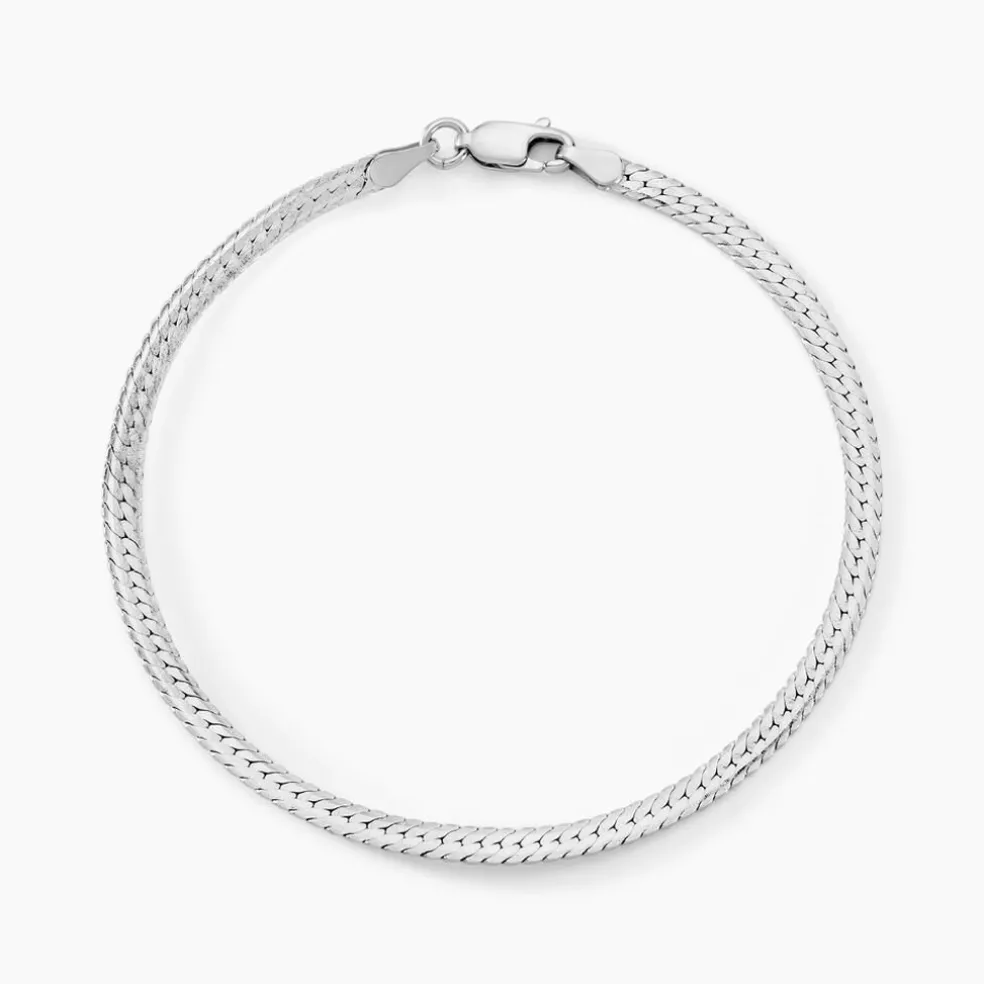 Bracelet Maille Argent Blanc 925/1000 Maille Herringbone Effet Diamanté Largeur 3mm 18cm