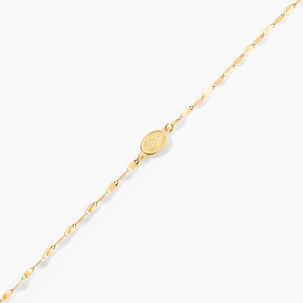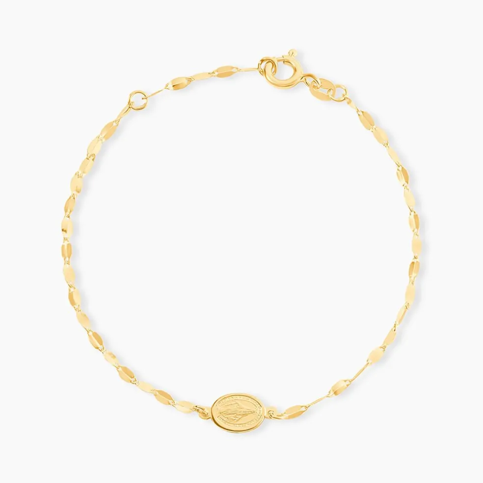 Bracelet Or Jaune 375/1000 Vierge Miraculeuse Ovale Maille Lumina 16+2cm