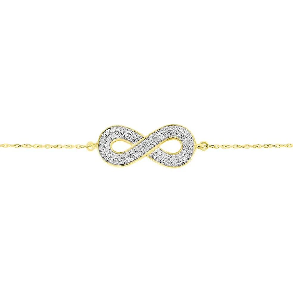 Bracelet Or Jaune 375/1000 Infini Double Rang Oxydes De Zirconium 19cm