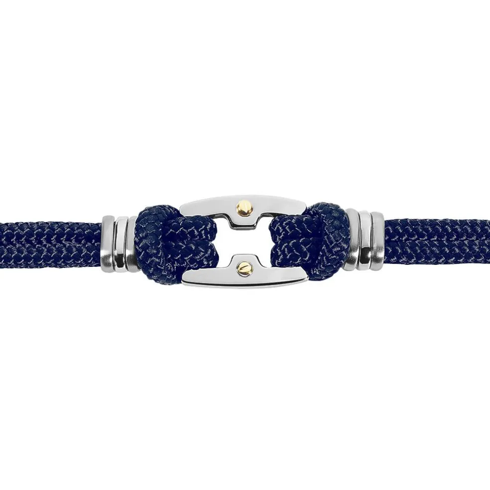 Bracelet Acier Vis Or Cordons Marine 21cm