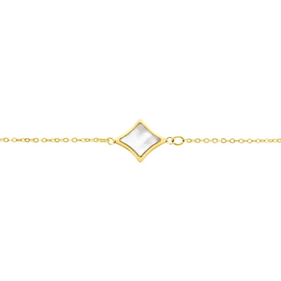 Bracelet Or Jaune 375/1000 Losange Nacre Blanche Serti Clos Maille Forcat 16+2cm