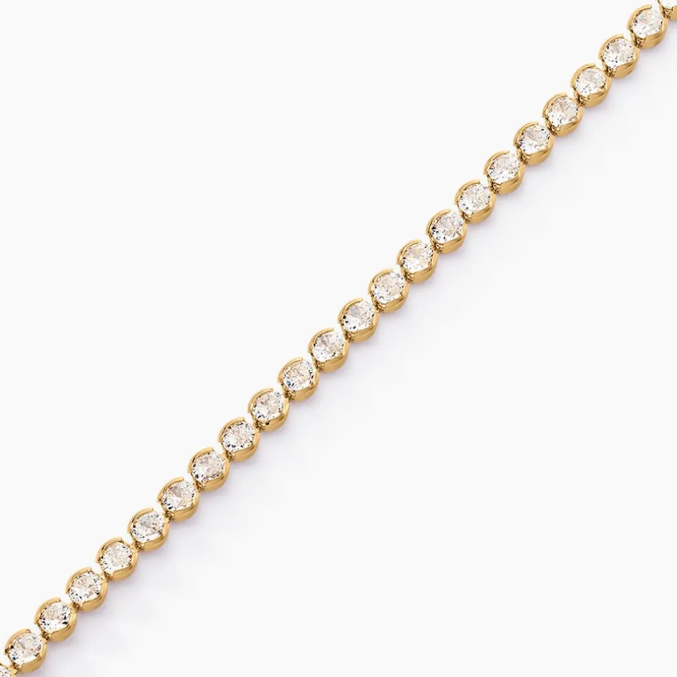 Bracelet Plaque Or Jaune Tennis Riviere Oxydes De Zirconium Sertis Clos Rond