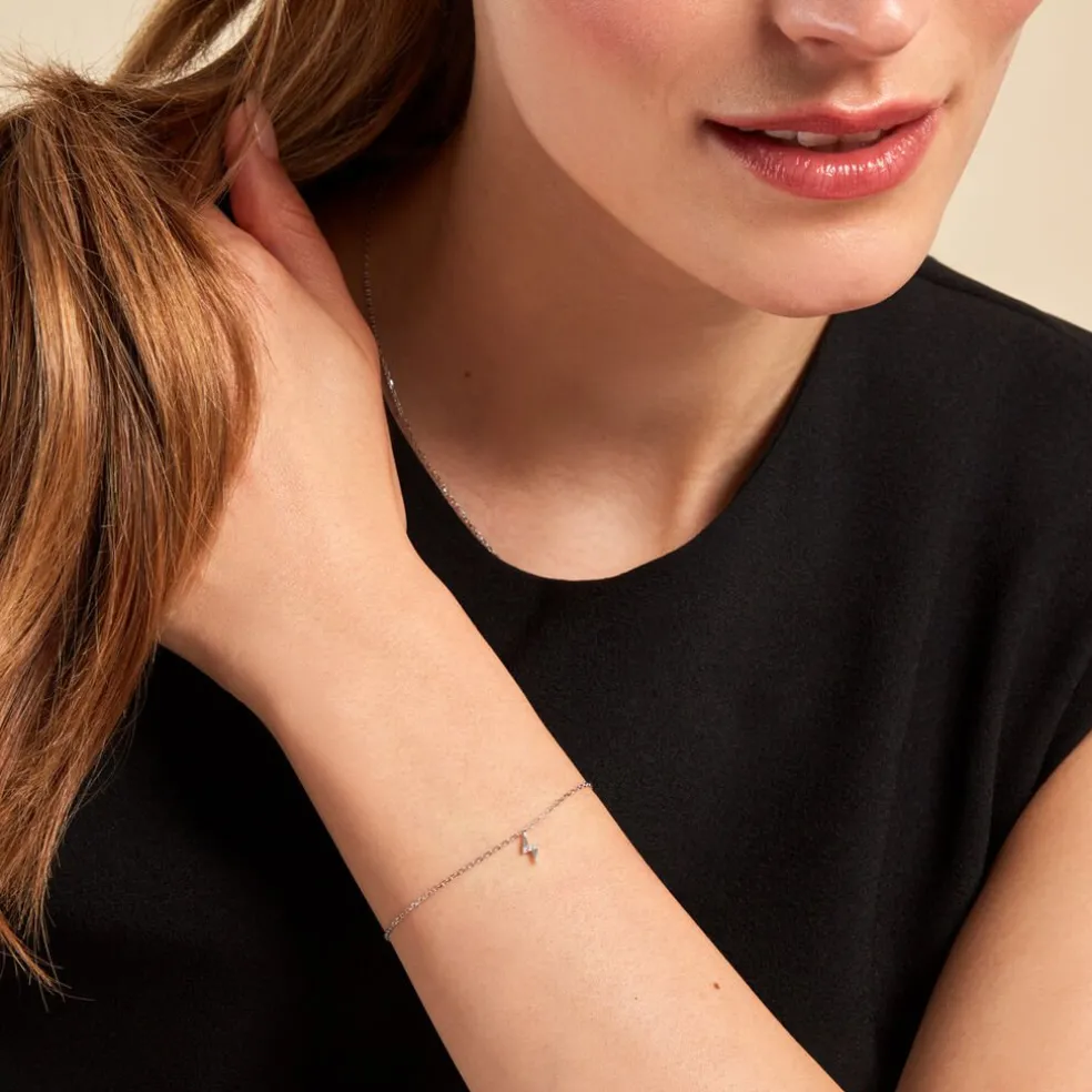 Bracelet Argent Blanc 925/1000 éclair Oxydes De Zirconium Maille Forçat 16+3cm