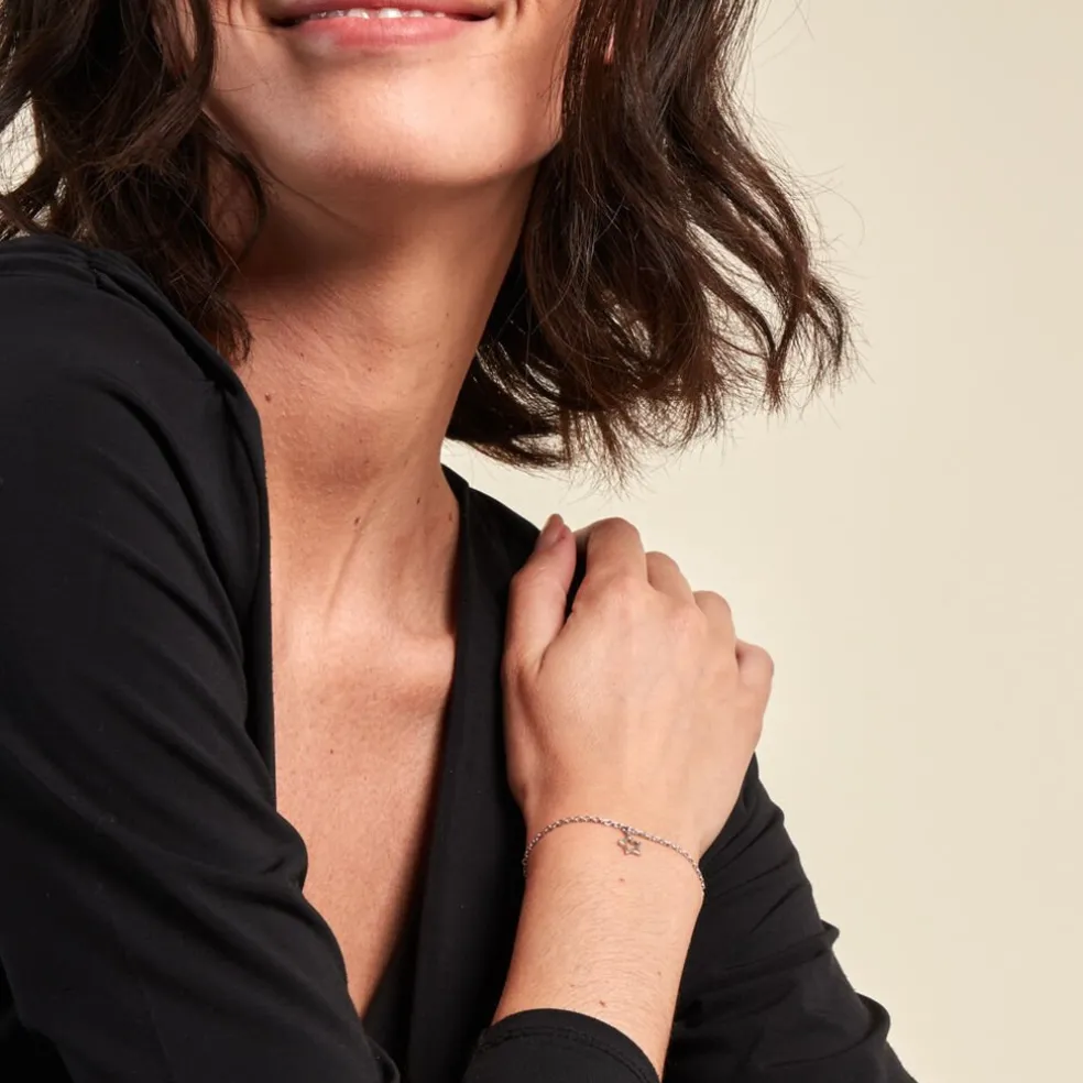 Bracelet Argent Blanc 925/1000 étoile Maille Forçat 16+3cm