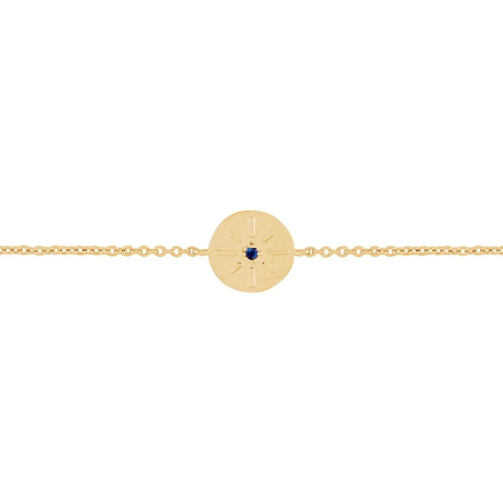 Bracelet Plaqué Or Jaune Forme Ronde Motif Astral Pierre Bleue 18cm