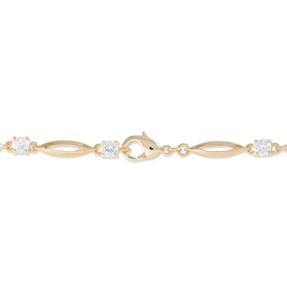Bracelet Plaque Or Jaune Maille Fantaisie Oxyde De Zirconium 18cm